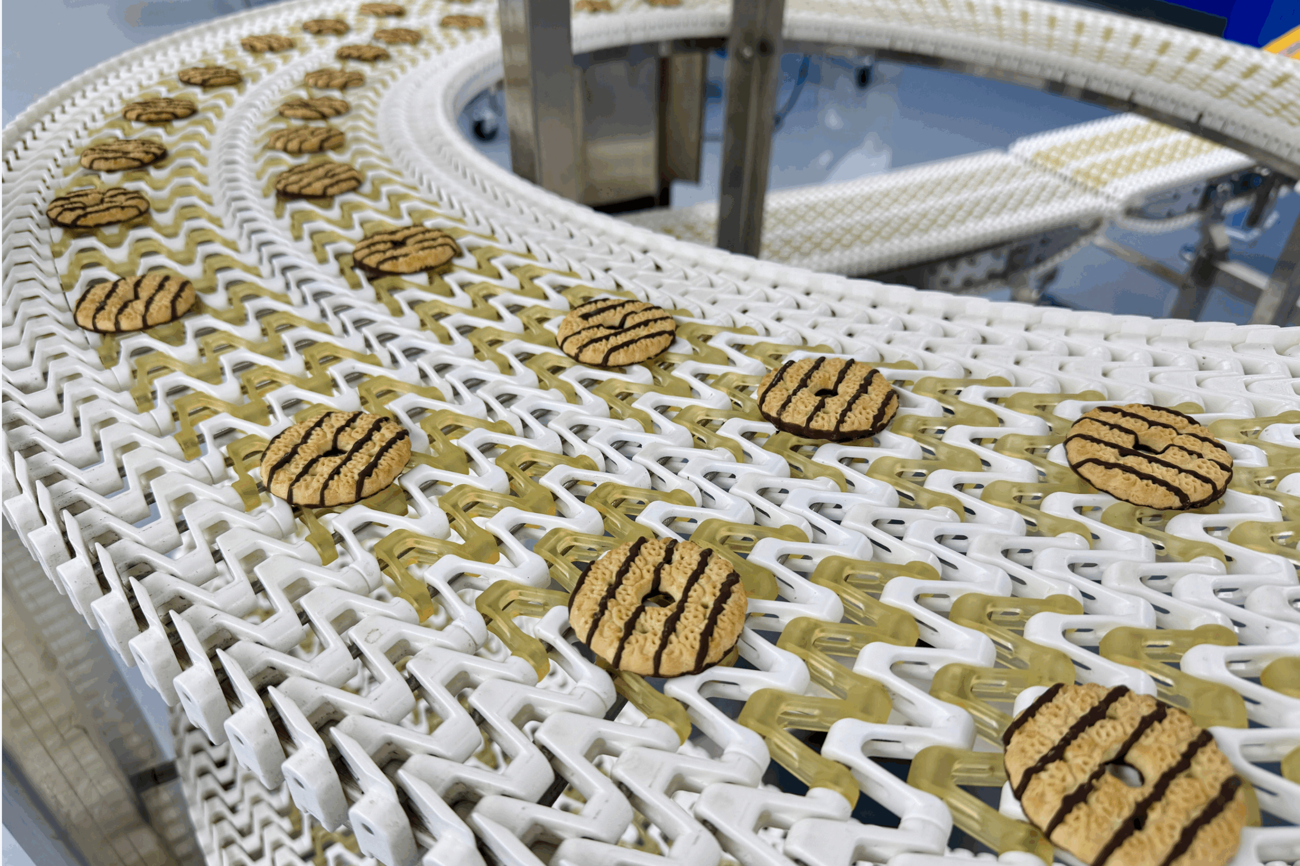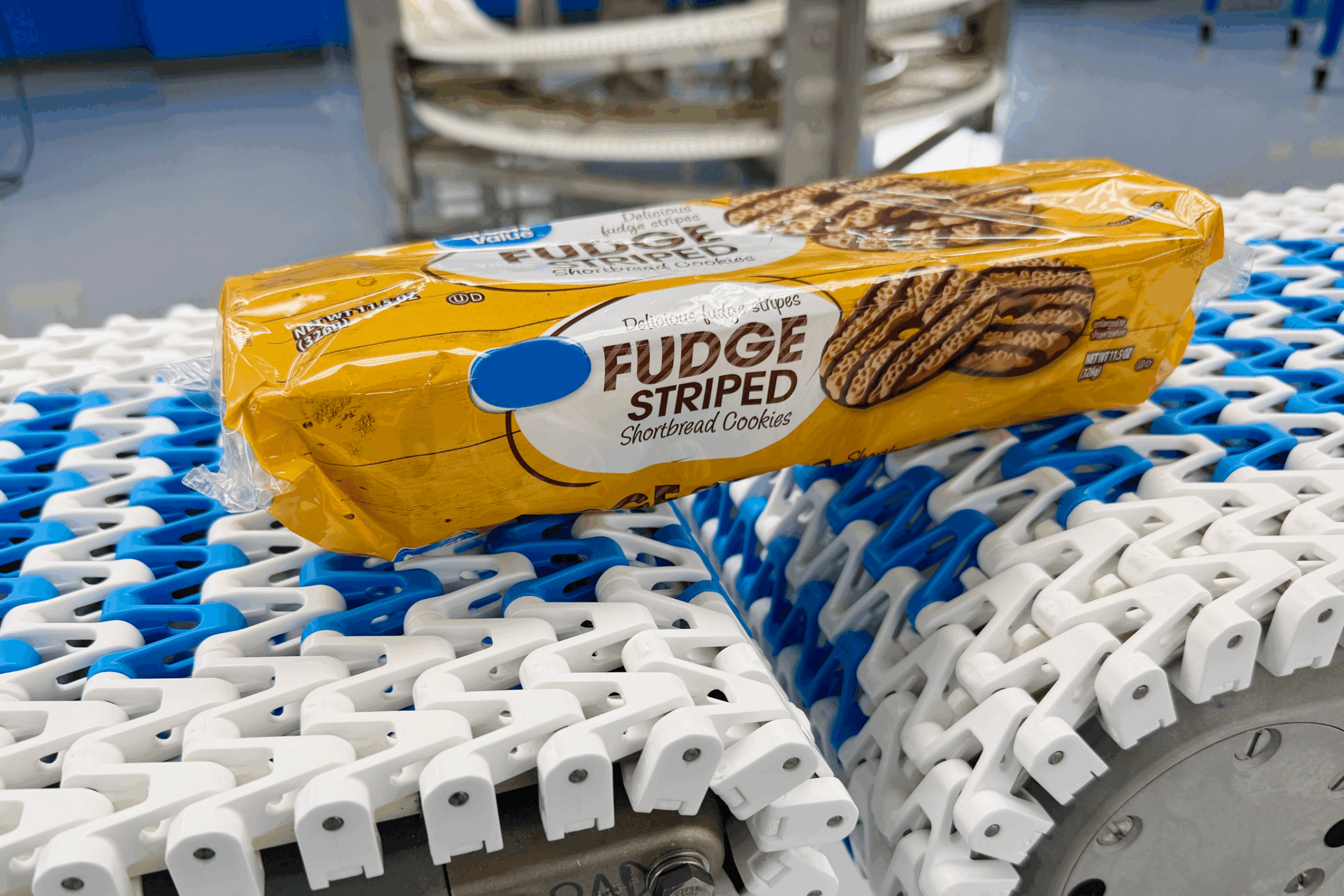 Conveyors with low-friction, smooth-running chains and tight transfer points are ideal for delicate products like cookies, pastries, and crackers. These features reduce breakage, prevent product tipping, and maintain product orientation throughout the line.