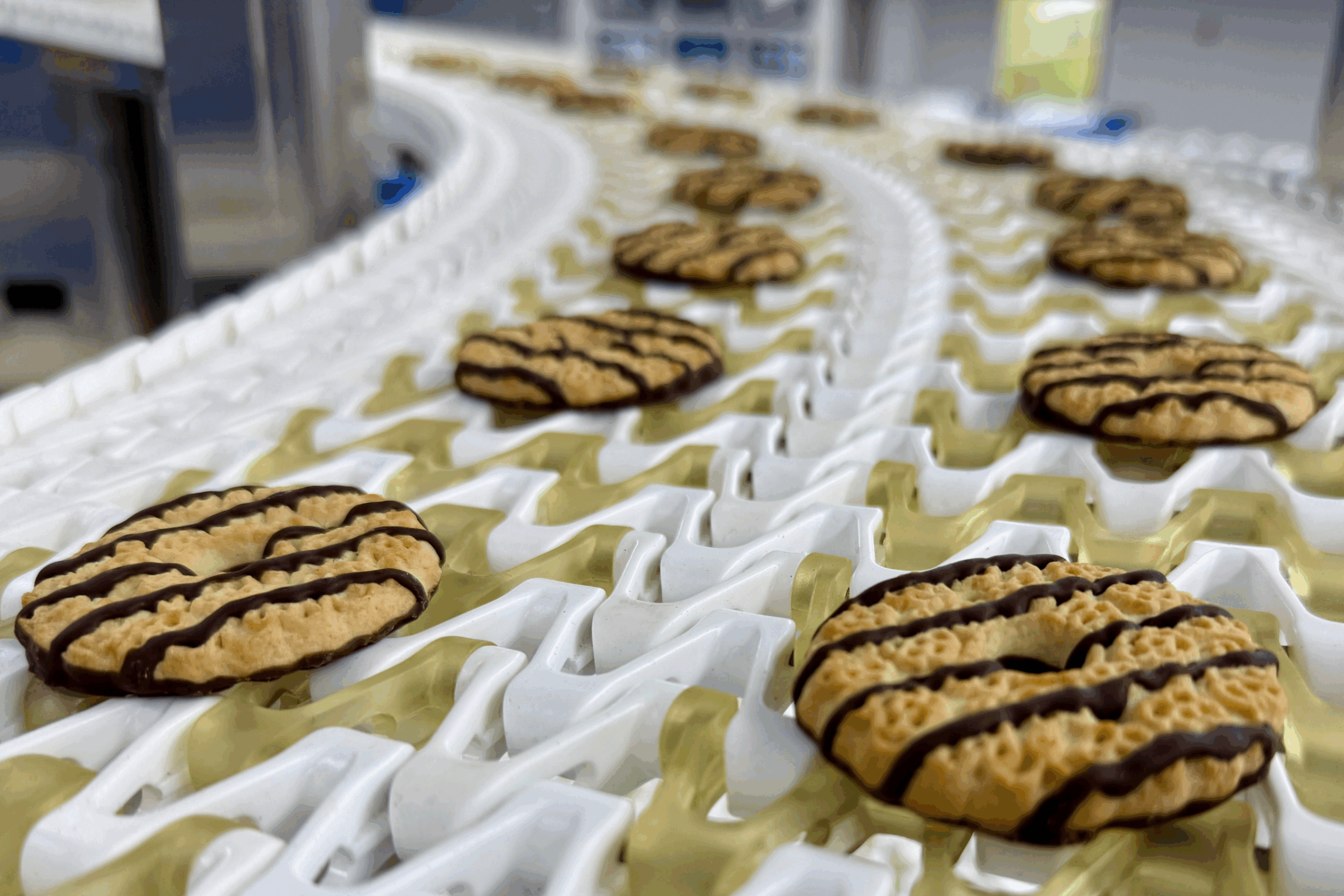 Whether you’re producing croissants, cookies, crackers, bars, or bagged snacks, our custom conveyors help improve throughput, reduce breakage, and streamline packaging processes — all while meeting food safety standards.