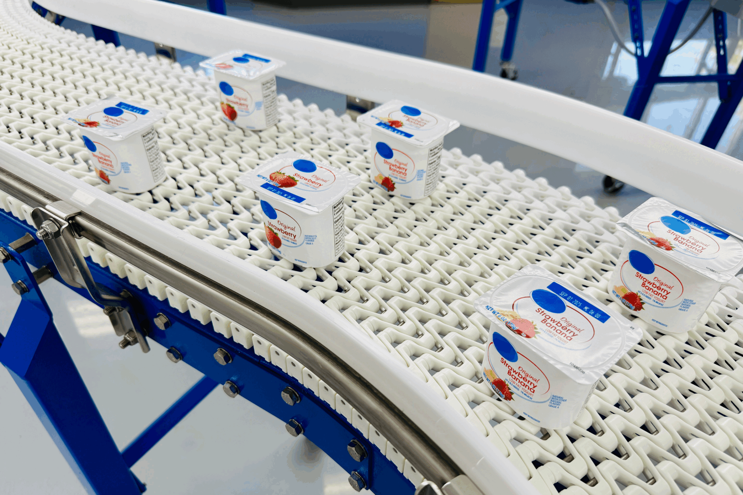 Dairy products vary in texture and handling requirements — from crumbly feta to slick yogurt tubs. Span Tech conveyors offer custom configurations and precise product control to reduce sticking, smearing, or damage during transport.